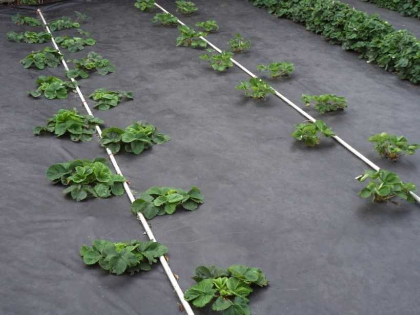 - Чтобы избежать подогрева, посадки укрывают спанбондом.