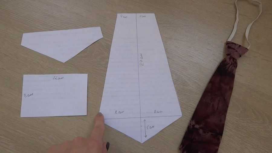Ещё один вариант выкройки с мерками. Здесь представлен галстук на резинке.