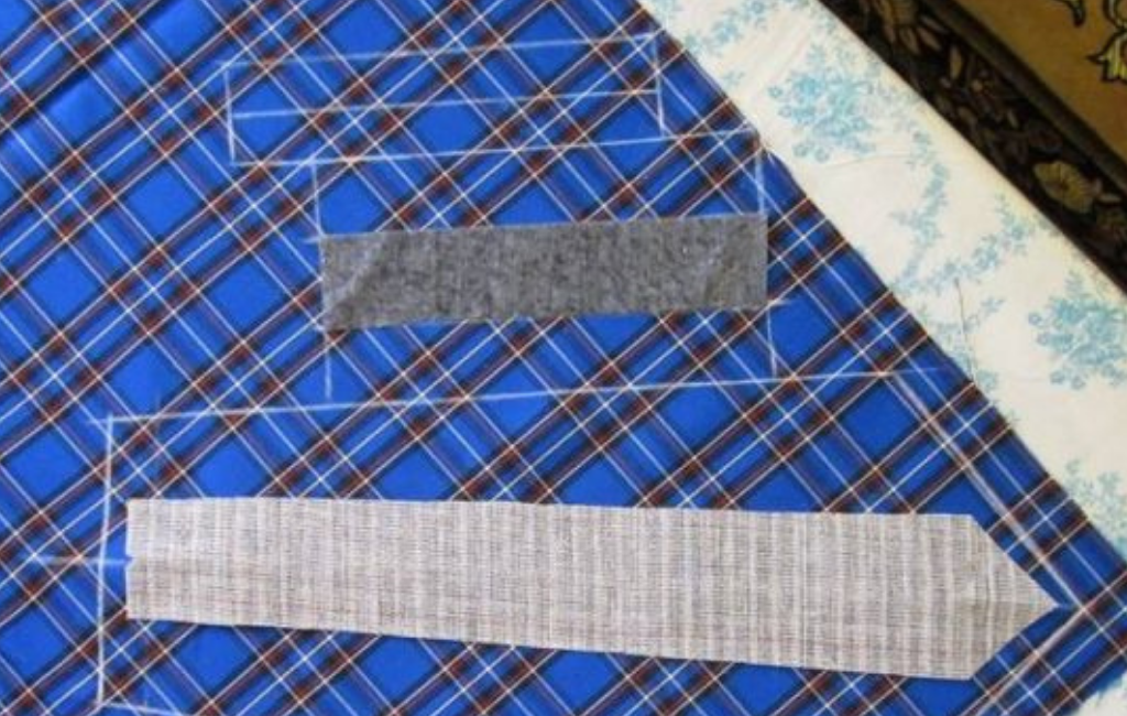 Раскрой ткани для галстука всегда должен производиться по косой линии, расположенной по диагонали к долевой нити.