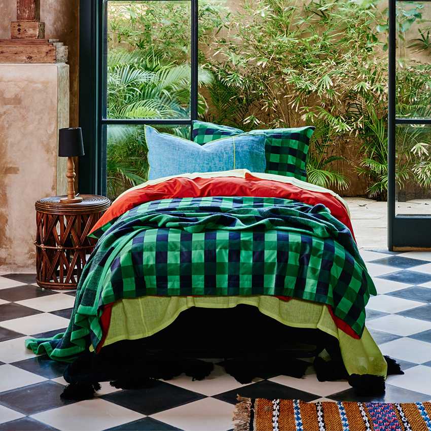 Отсутствие изголовья дает возможность интересно обыграть стену за кроватью