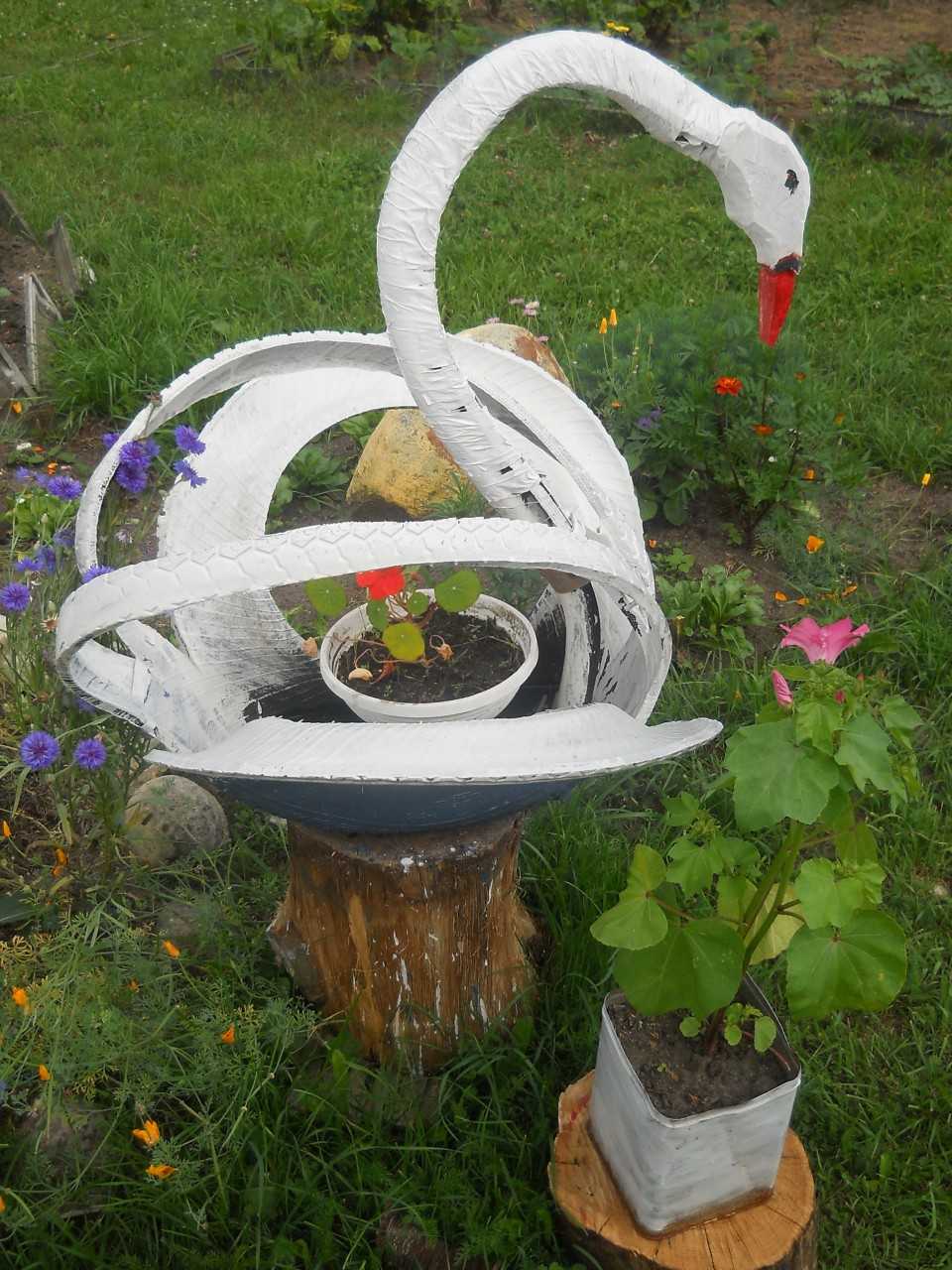 Как сделать лебедя из автомобильной покрышки для украшения сада