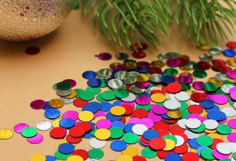 Можно сделать гирлянду из лампочек, окуните каждую в краску и дайте высохнуть к верх тормашками. Затем привяжите на мишуру. И вауля, сияющая разноцветная композиция готова.