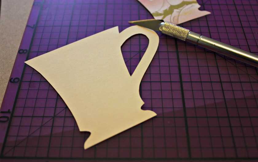 - Из картона вырезать форму чайной чашки с ручкой.