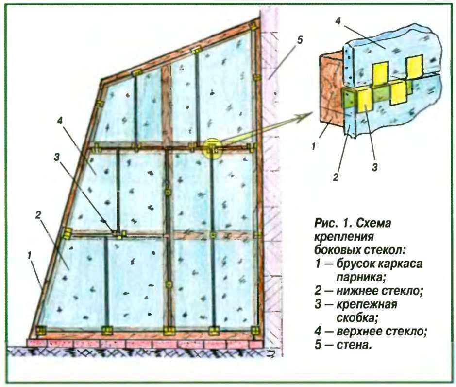 - Верхняя обвязка – это основа для кровли. Парник оконный из рам должен иметь угол ската не менее 40 градусов, чтобы вода спокойно стекала и скапливалась в пленке.