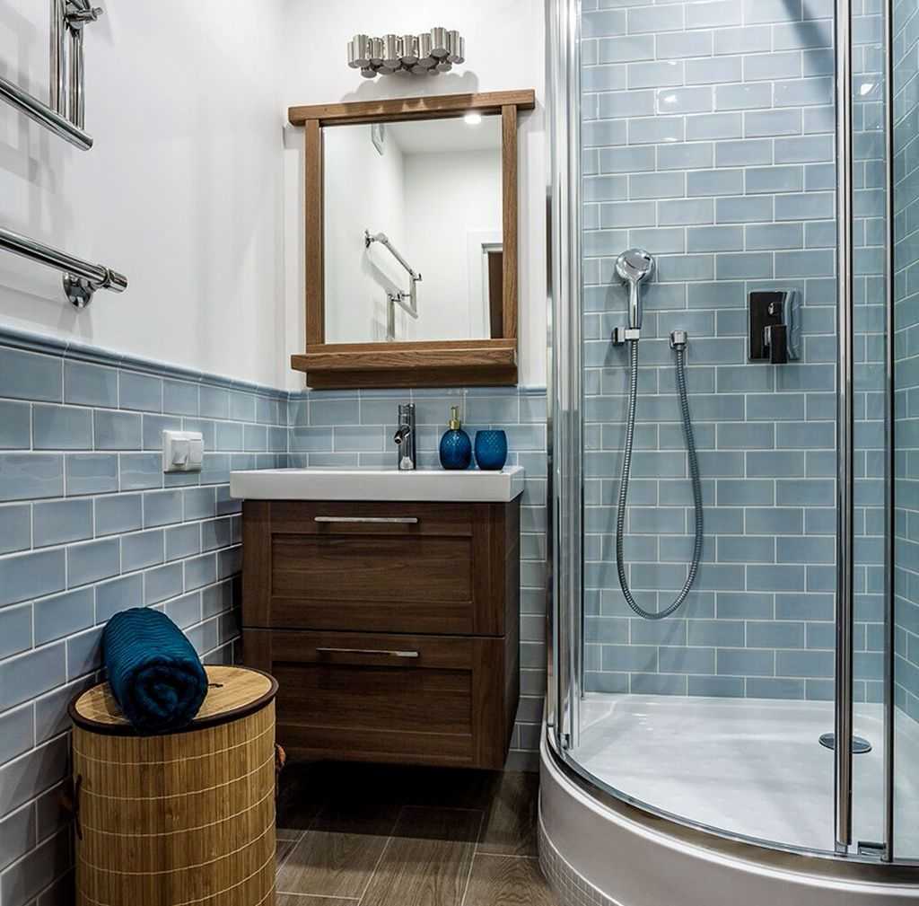 Для отделки помещения в ванной комнате, где есть такая кабина, используют плитку, обои, покраску, дерево и т.д.