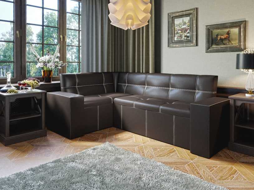 - Индустриальный стиль. Лаконично впишутся кухонные уголки из кожи или ее искусственного заменителя. Подойдет массивная мебель.