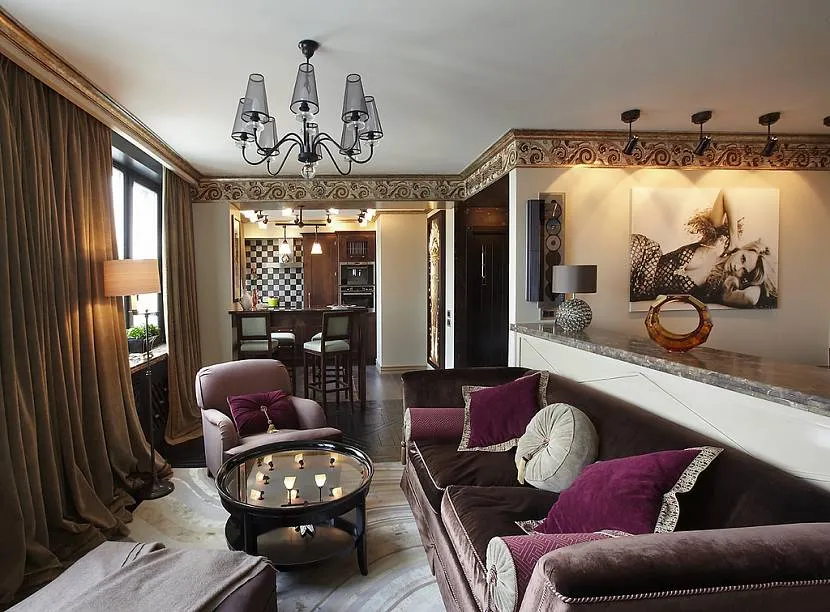 - Классические интерьеры. В классику отлично впишутся уголки на изогнутых ножках, с текстильной или кожаной обивкой. Приветствуются классические формы.
