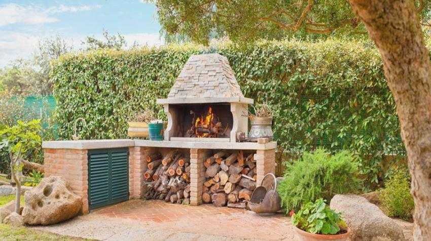 - На участке с мангалом рекомендуется устроить место хранения дров, поставить стулья, лавочки, столик.