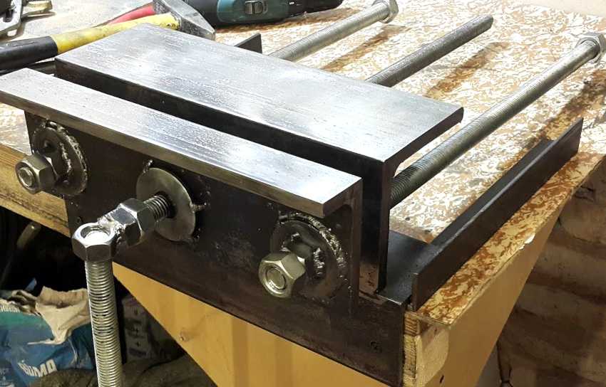- Держатель для прижимающей губки создаётся за счёт сварки и с одного края крепится болтами, так же как и губка. Это позволяет мастеру менять их при необходимости.