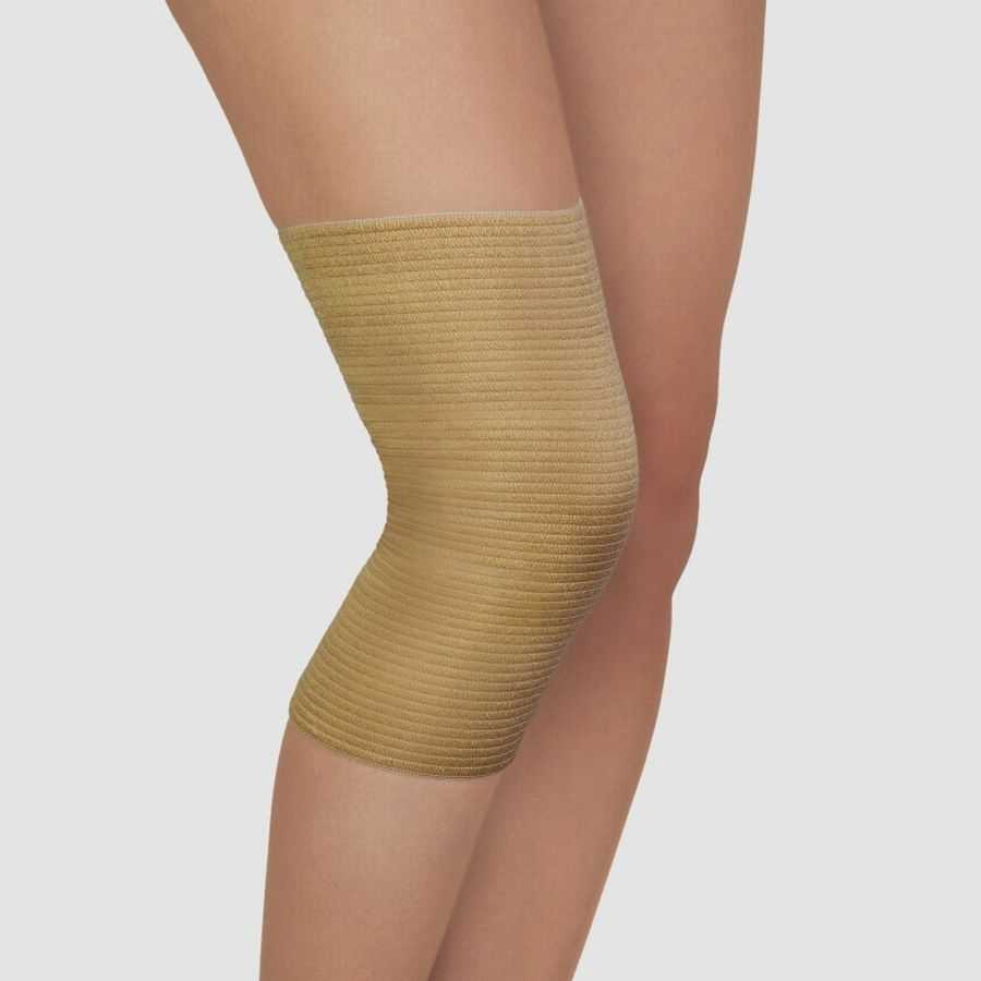 Еще эластичный наколенник бандаж из воздухо- и влагопроницаемой ткани. Слабая степень фиксации определяет применение после легких травм типа растяжений. Применение разных типов вязки бандажа обеспечивает его комфортность. Рекомендуется для домашнего ношения, потому что во время занятий спортом может скатываться.