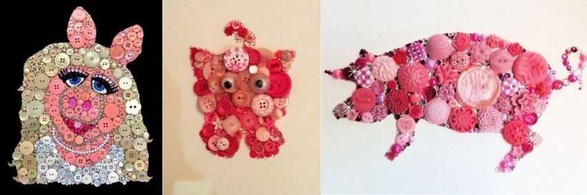 Создать можно замечательную картину свиньи из пуговиц и повесить её на стенку.