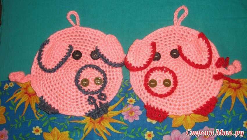 Для любителей вязания можно попробовать сделать такие прикольных поросят.