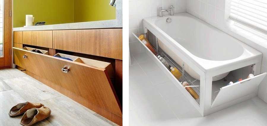 Наверняка вы неоднократно натыкались на фото различных выдвижных и откидных систем хранения под ванной.