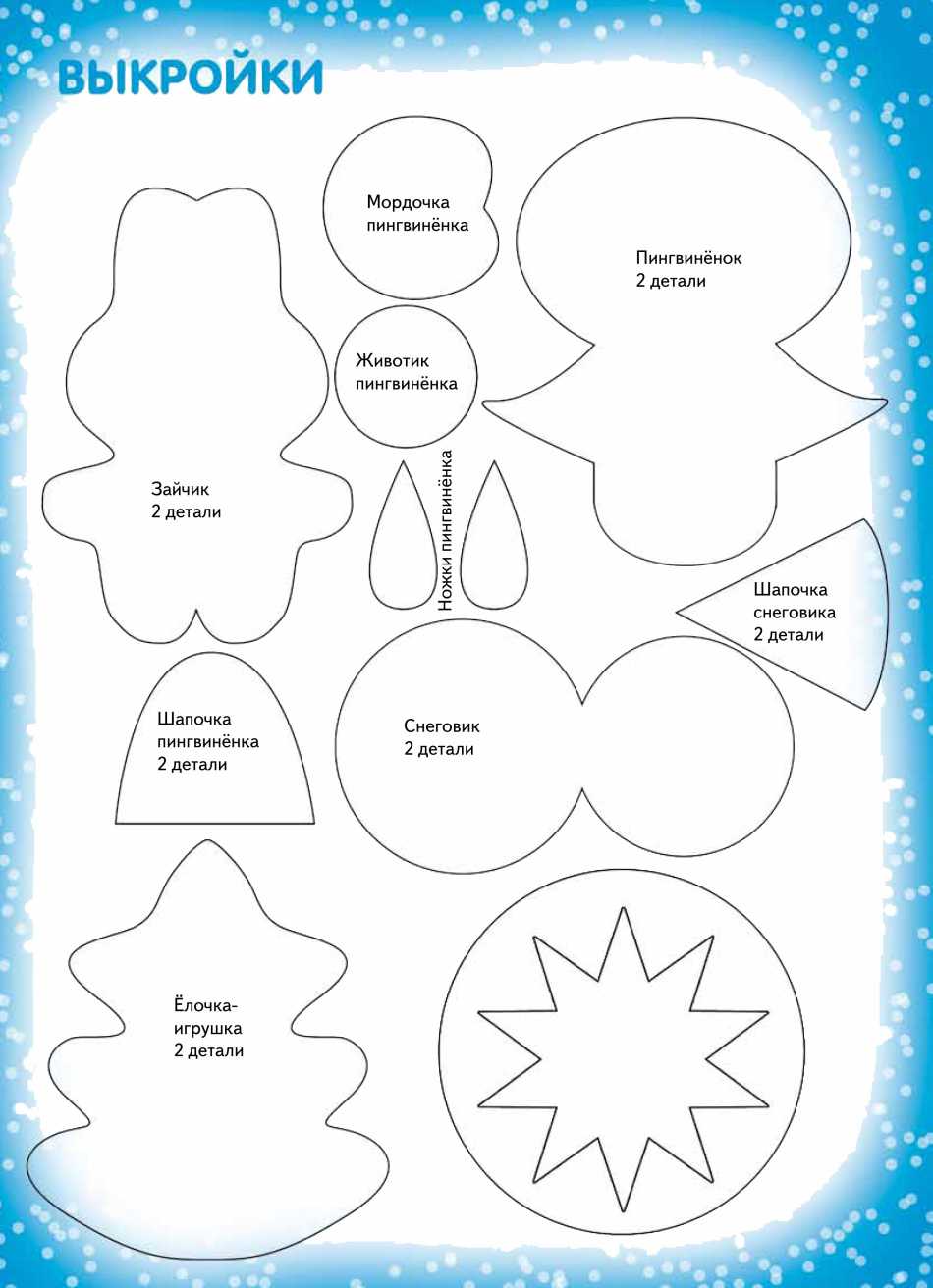 Начинать изготовление елочной игрушки нужно с выбора качественной выкройки. Без нее игрушка будет неаккуратной. Можете воспользоваться такими шаблонами: