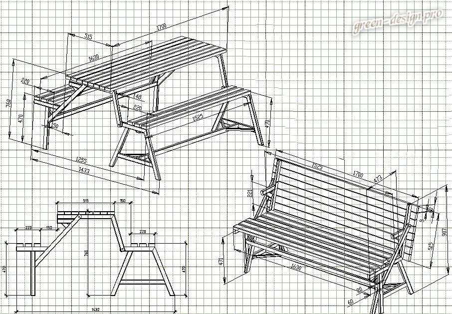 Строительство лавочек требует времени, практического и творческого подхода. Прежде чем приступать к работе, следует подготовить чертеж, который поможет быстро добиться желаемого результата.