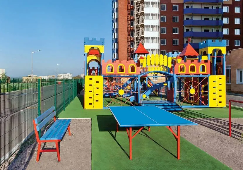 - Ограждение детской площадки собирается из прочного материала, способного выдержать вес несовершеннолетних.