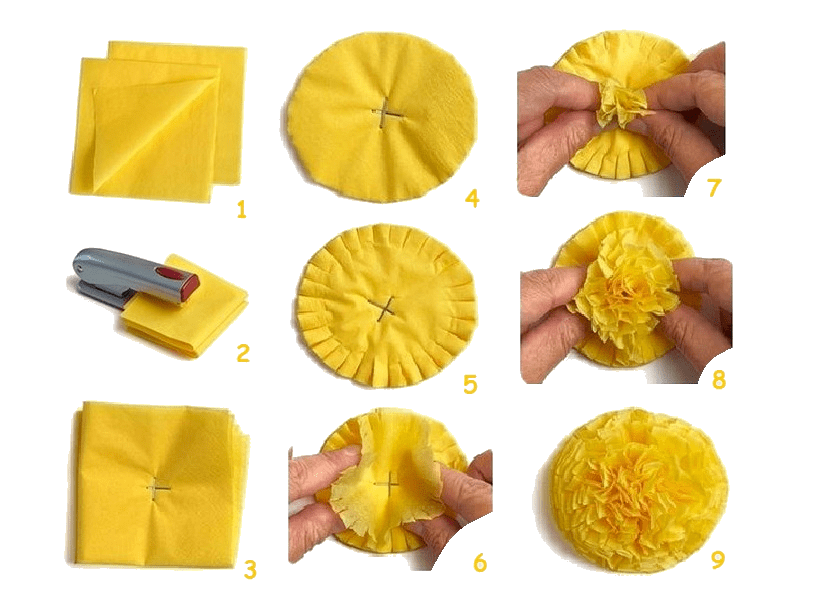 Пошаговая инструкция изготовления цветка из цветной бумажной салфетки