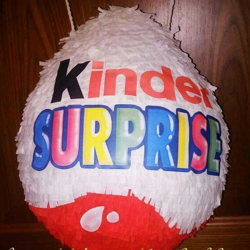 Пиньята – это игрушка с сюрпризом. Поэтому лучше всего ее изображать в виде шоколадного лакомства, которое подразумевает под собой сюрприз внутри. Любой ребенок будет просто в восторге. Представляем вашему вниманию 8 фото пиньят в виде киндер сюрприза своими руками.