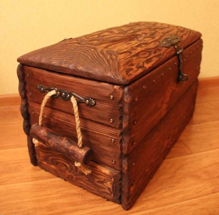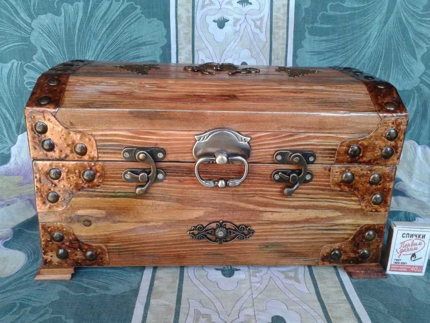 эффект кракелюра». Можно пойти дальше и снабдить сувенир изысканной резьбой, инкрустацией и даже ковкой, что будет особенно стильно смотреться в сочетании с металлической фурнитурой для сундуков под старину.