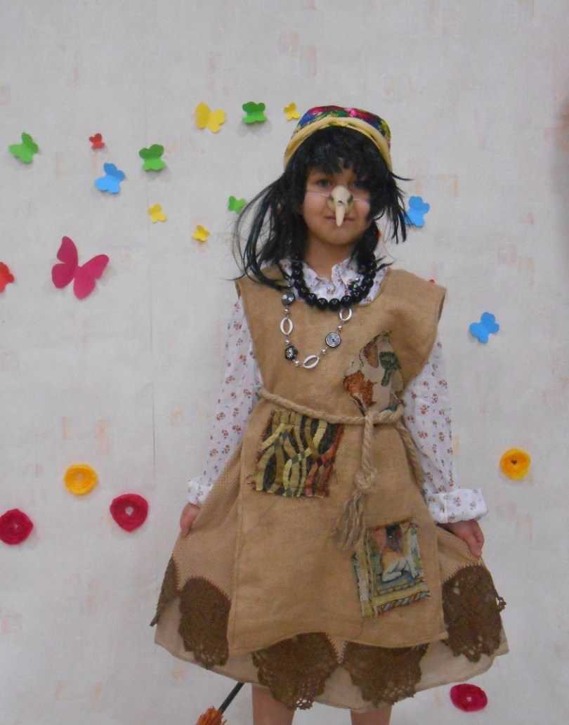 Если под рукой нет мешка, что неудивительно в городских условиях, хорошую одежду портить не хочется и вы ломаете голову над тем, как сшить костюм Бабы Яги своими руками, используйте старую скатерть или простынь.