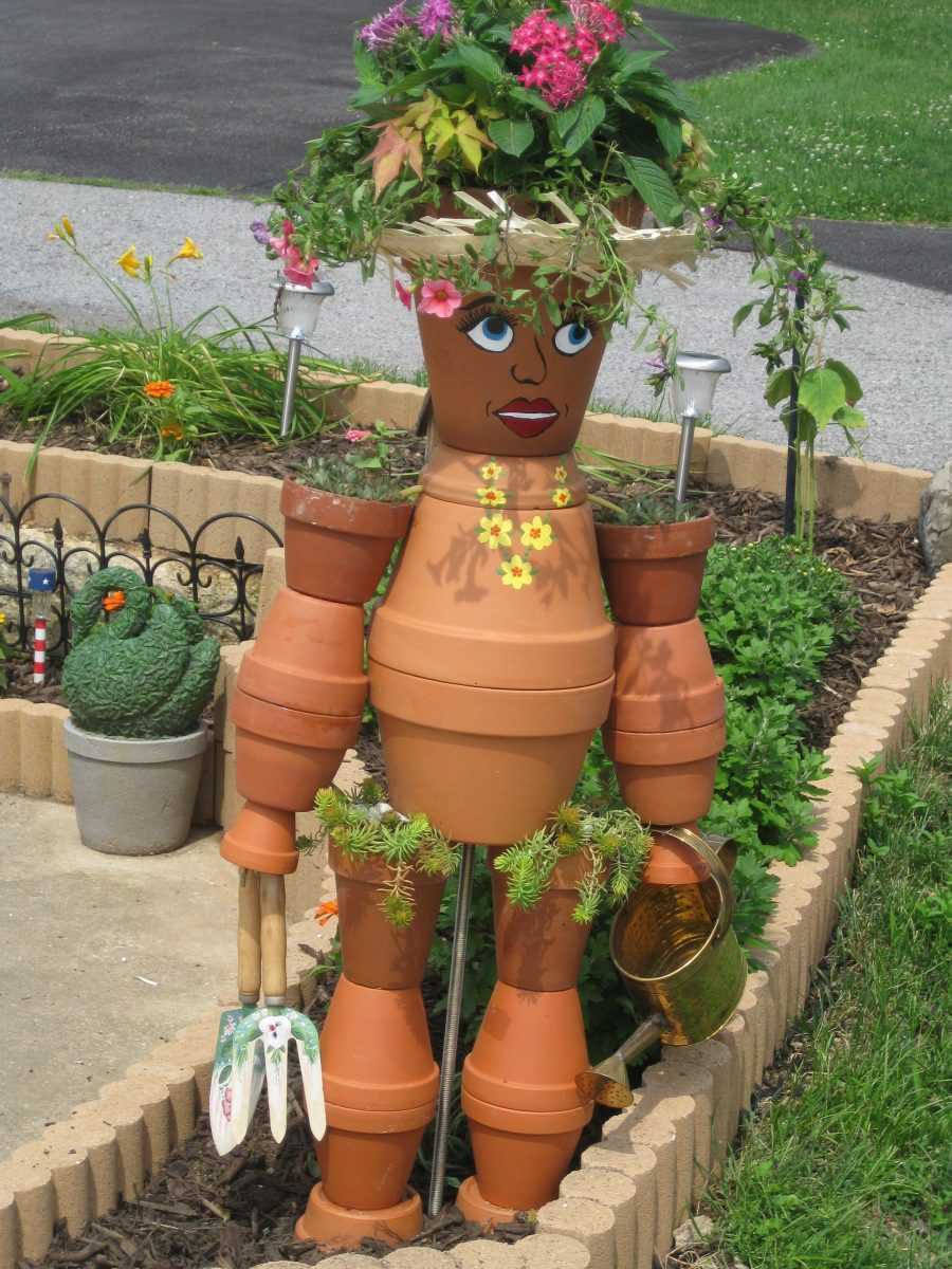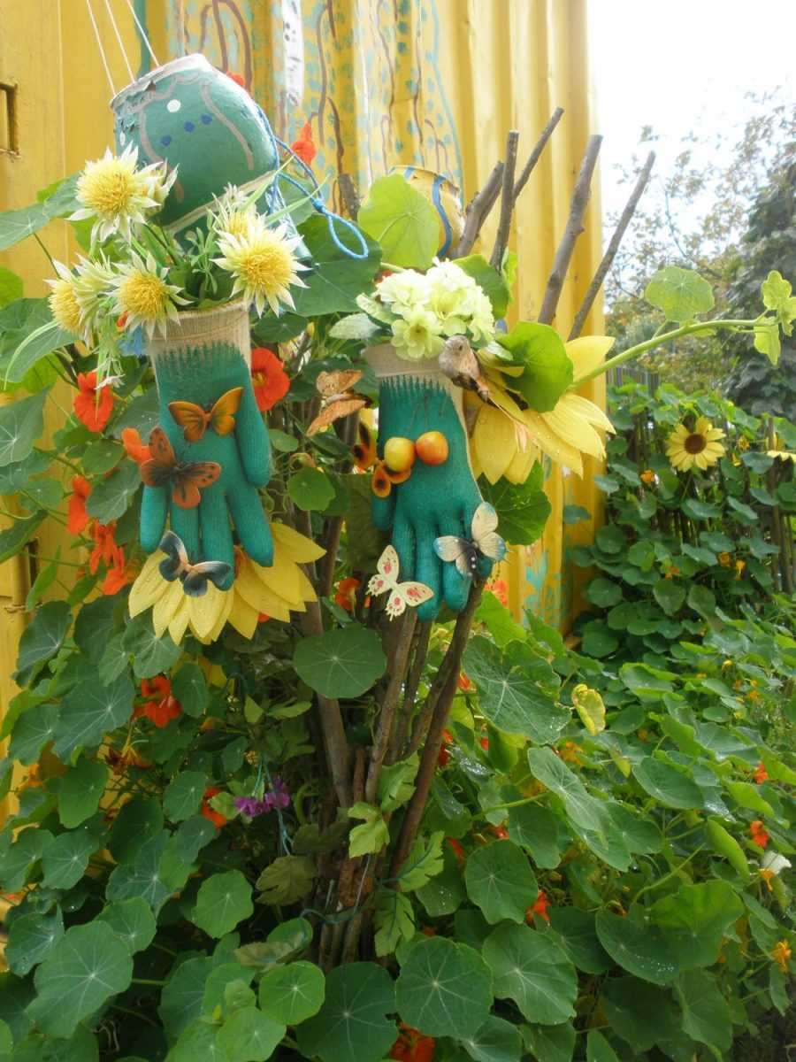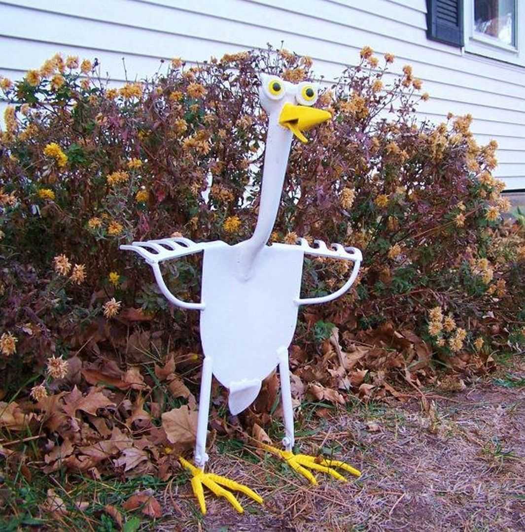 В сети можно найти превеликое множество фото новинок поделок для сада с использованием, казалось бы, немыслимых для этого вещей: застывшей монтажной пены, кусочков пенопласта, камней необычной конфигурации, устаревших элементов мебели, резиновых покрышек, обычных бутылочек из пластика и т.д.