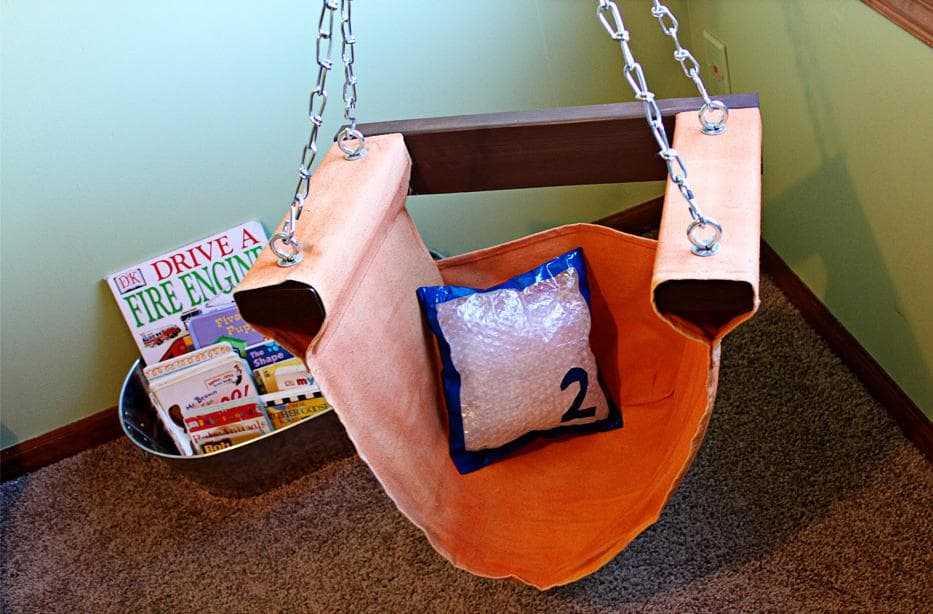 Также можно сделать качели из связанных между собой досок, получая в результате гибкий подвесной стул.