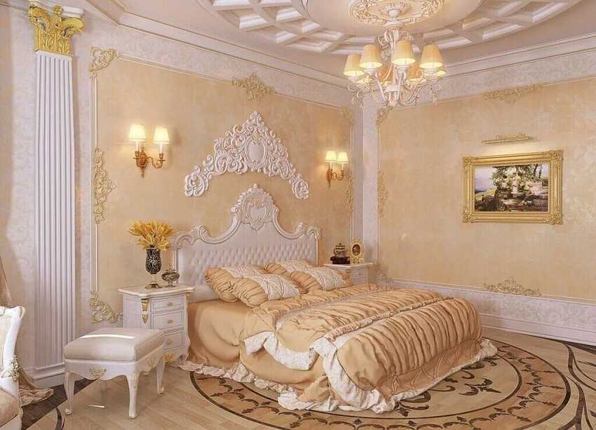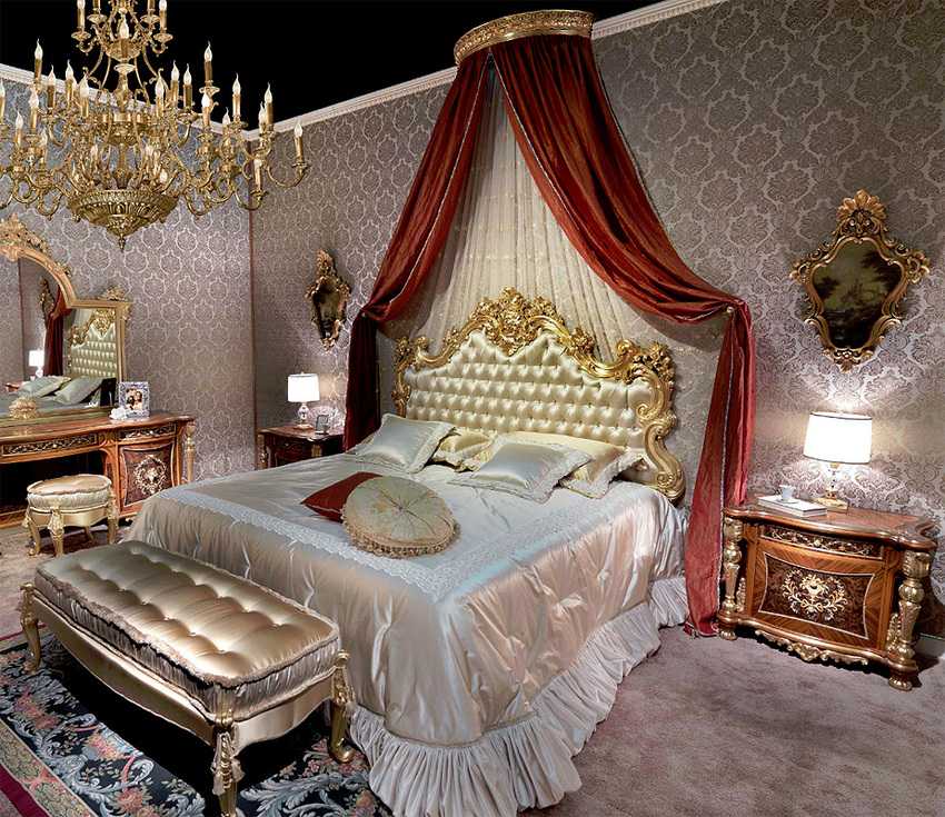 Создать спальню в духе барокко удастся только в просторном помещении.