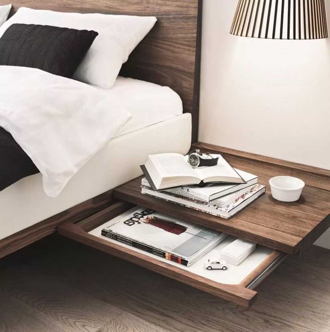 У большинства людей рядом с кроватью стоит небольшая тумбочка с полками. Именно на нее все предпочитают класть телефон на ночь и ставить его на зарядку. Можно соорудить дополнительную прикроватную небольшую полку, в которой будут разъемы для подключения мобильных телефонов и планшетов.