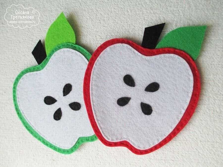 К реализации задуманного можно присоединить и детишек, ведь они могут придумать различные интересные элементы, которые можно добавить К примеру, глазки. Прихватка яблоко из фетра двух цветов.