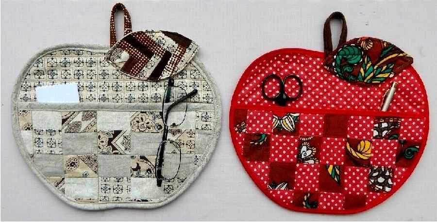 Эти прихватки яблоки сшиты специально для употребления не по назначению, то есть как кухонные прихватки. В их кармашках могут храниться разные мелкие предметы, и не только кухонные, вообще всякие.