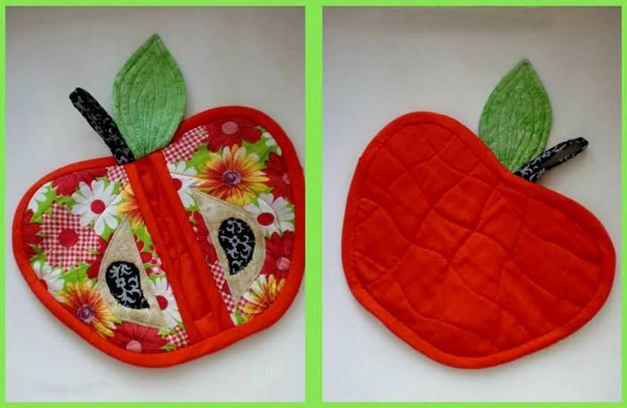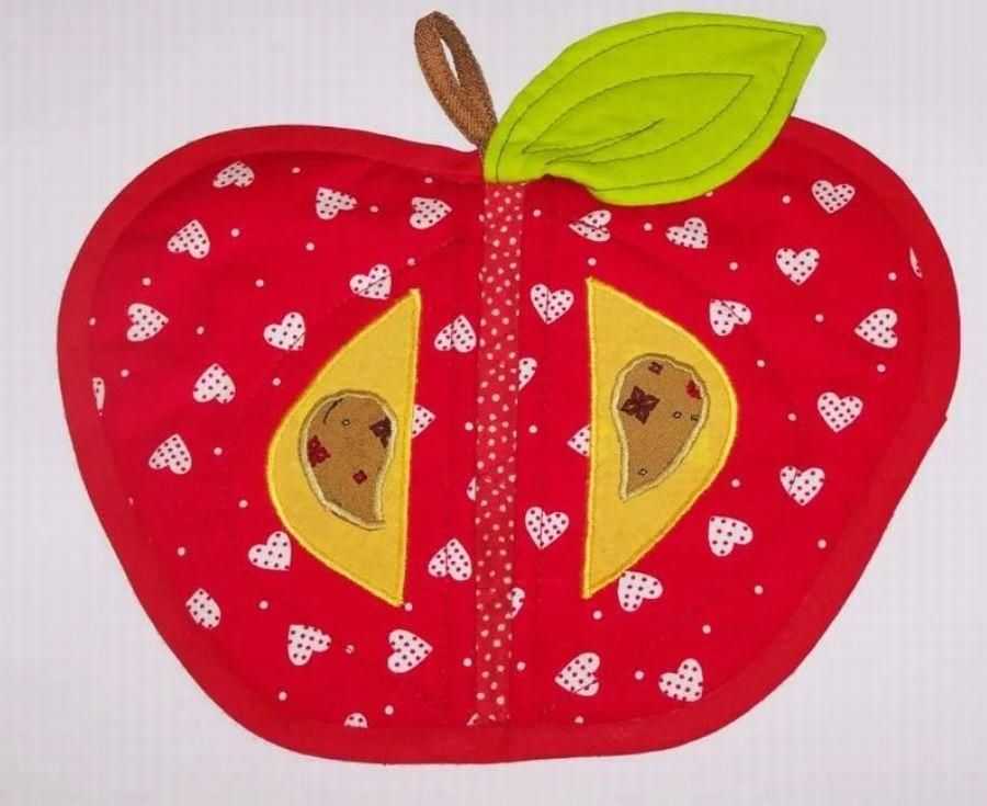 Цвет и форма яблочка будет зависеть только от вас, также, как и размеры самой прихватки.