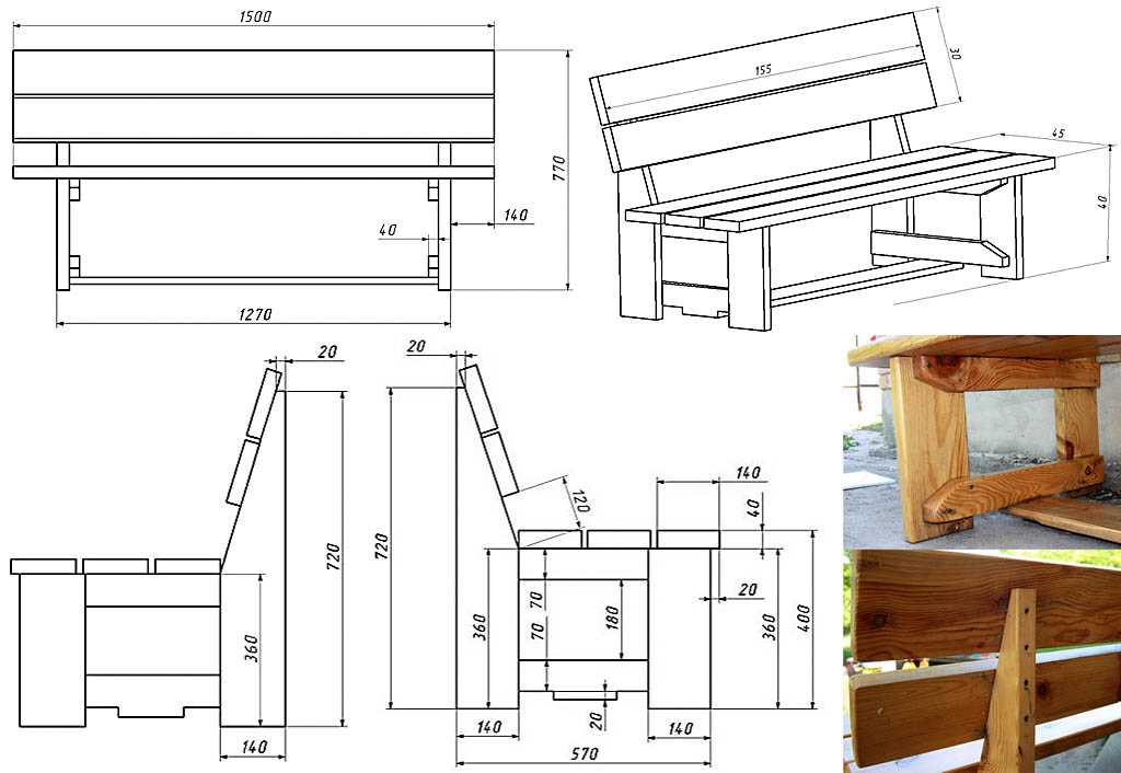 Чертеж садовой скамейки со спинкой из дерева своими руками