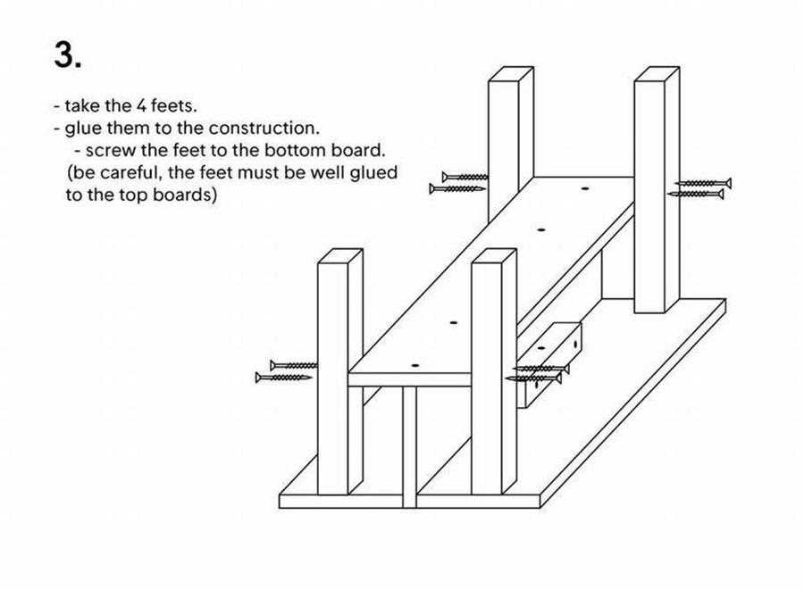 - усиливаем конструкцию поперечиной у основания ножек и продольной балкой внизу;