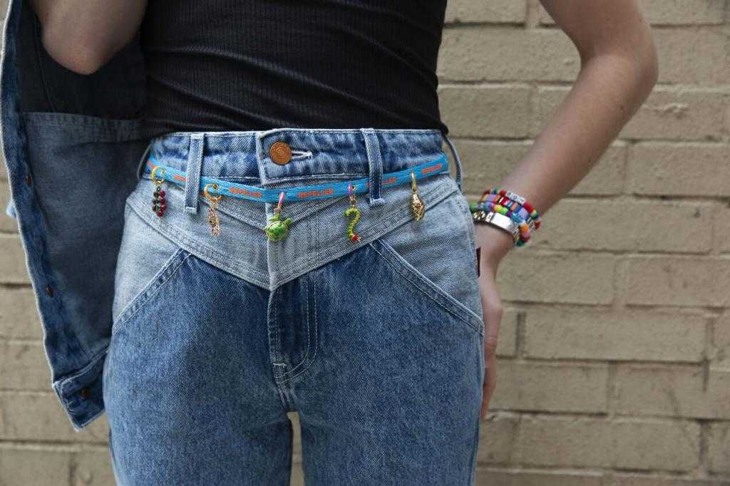 Преимущество этого вида применения шнурков состоит в том, что на него можно повесить много оригинальных украшений. Выберите шнурок, гармонирующий с цветом брюк или другого предмета одежды (в случае с джинсами можете выбирать любой цвет и фактуру, поскольку это на сто процентов будет смотреться очень привлекательно). Прикрепите к нему украшения в форме сережек или заколок (так будет проще зафиксировать украшение) на одинаковом расстоянии и заправьте вместо пояса.