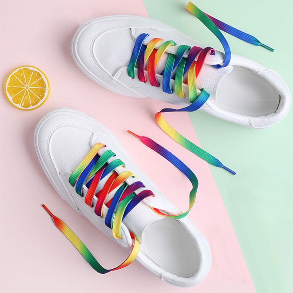 Можно пойти еще дальше и приобрести разноцветные шнурки. Но помните: с цветной и яркой обувью они будут смотреться несуразно — из-за обилия красок стильные кеды рискуют превратиться в башмаки клоуна. Шнуруйте цветными изделиями только однотонную обувь — так вы сможете не только сделать образ ярким, но и соблюсти баланс в красках.