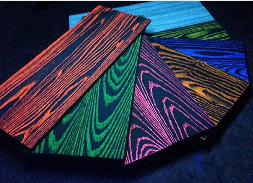 Из подручных средств удается сделать и флуоресцентный состав, однако он имеет в себе вредный для здоровья фосфор. Поэтому создание флуоресцентных средств не распространено в наши дни, так как лучше применять люминофору для создания красок. Зачастую средства на основе фосфора применяют лишь для облагораживания внешней части здания, в то время как люминесцентными красками украшают внутреннюю отделку.