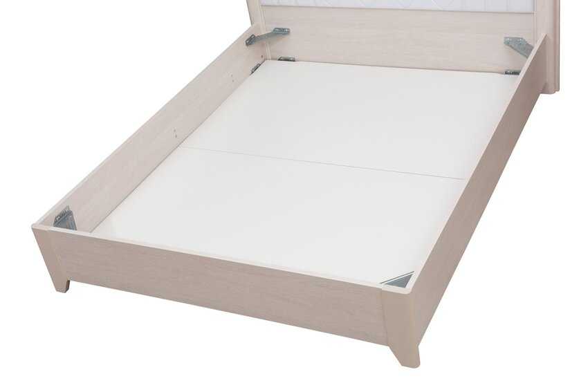 Прочная конструкция кровати-подиума, внутри которой на направляющих рейках размещены бельевые ящики. Качественное оборудование позволяет задвигать их малейшим прикосновением руки. Верхняя часть используется как спальник; нижняя – в качестве места для складирования вещей.