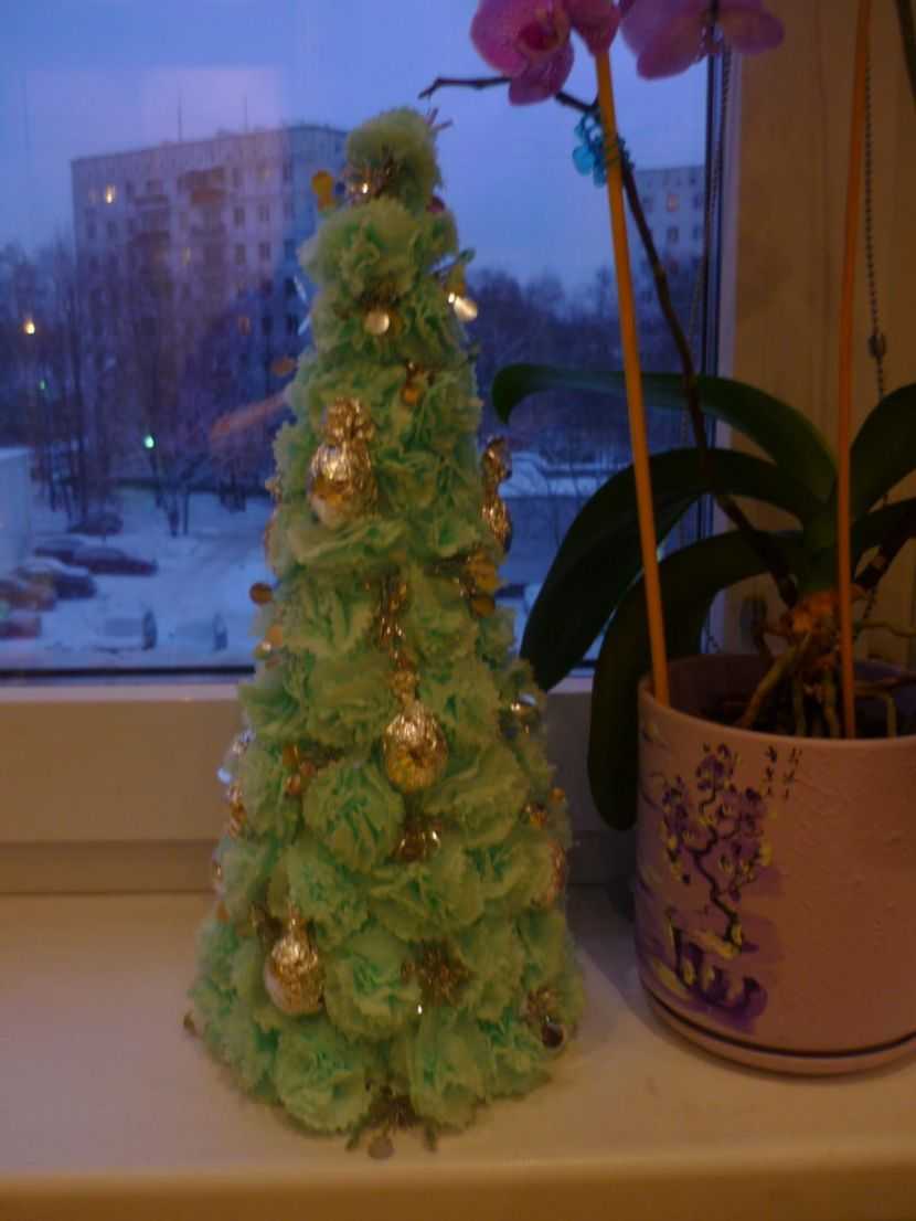 - Сформируйте бутон, сжав каждый слой салфетки, начиная сверха.