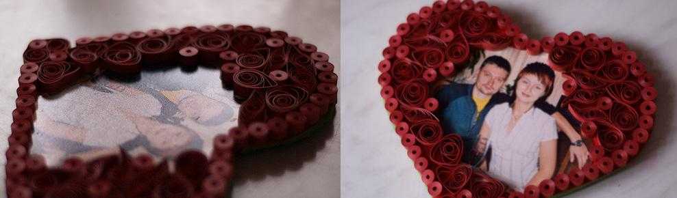 Возьмите свою любовную фотографию и обведите ее до нужной формы, а потом приклейте на двусторонний скотч или ленту.