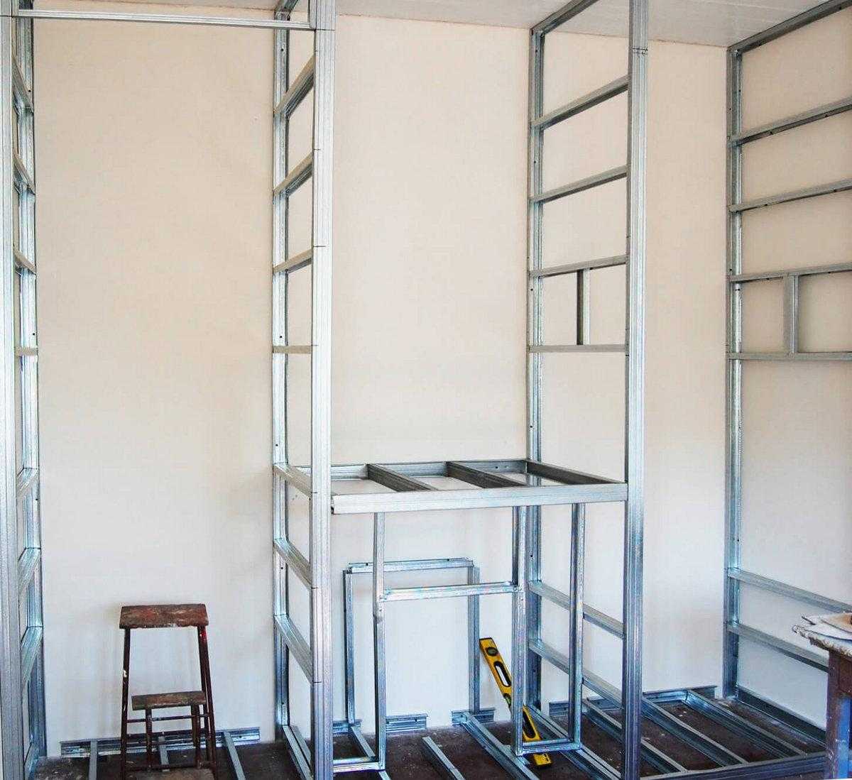В итоге должен получиться своеобразный прямоугольный костяк, который после полной обшивки гипсокартоном превратится в полноценный шкаф.