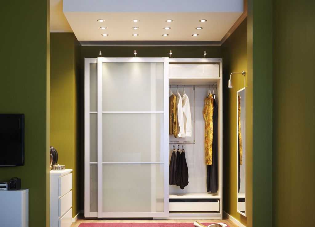 - шкаф-купе. Позволяет уместить все необходимые вещи и скрыть их от посторонних глаз.