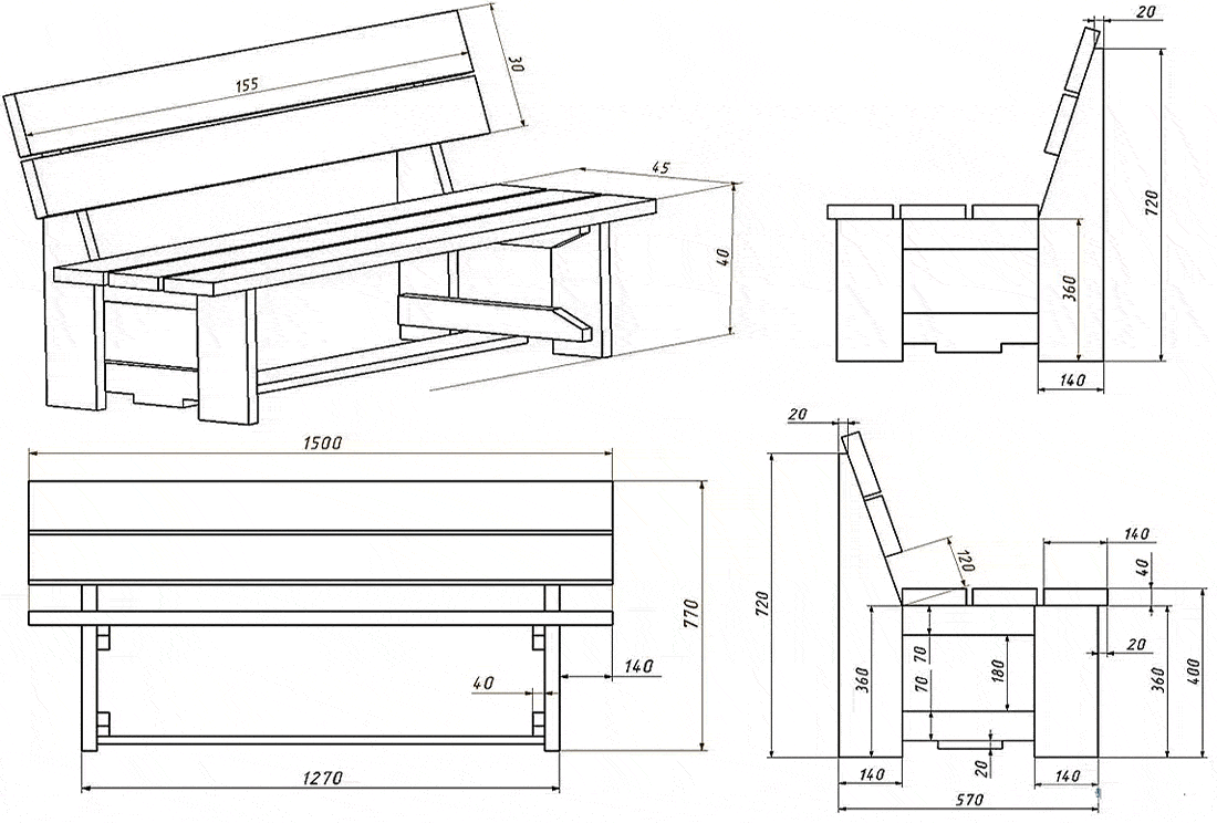 Чертежи скамеек для дачи своими руками: фото и схемы