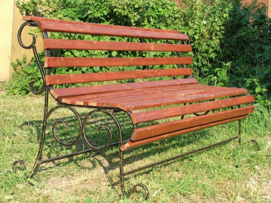 Это хорошая идея. Однако не очень приятно сидеть в жаркую погоду на раскалённой металлической поверхности, а в холода — на ледяной. Поэтому в этом случае можно рассмотреть комбинированный вариант — сочетания деревянных частей с металлическими.
