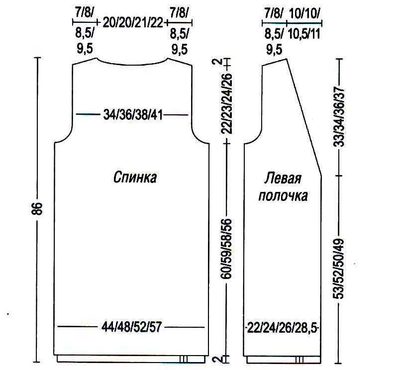 А если нужна выкройка – извольте. Масштабируйте рисунок согласно своим меркам. Подсчитайте, сколько клеточек приходится на переднюю часть, замерьте полуобхват груди и разделите на количество клеток. Так можно узнать их ширину.