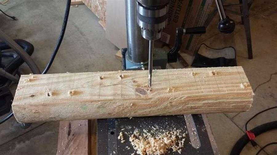 Затем сделаем верхние и нижние поверхности бревен плоскими. Просверлим в них отверстия для крепежа