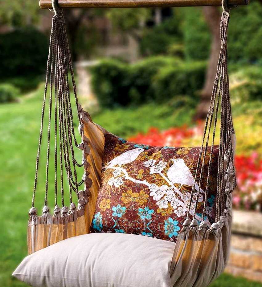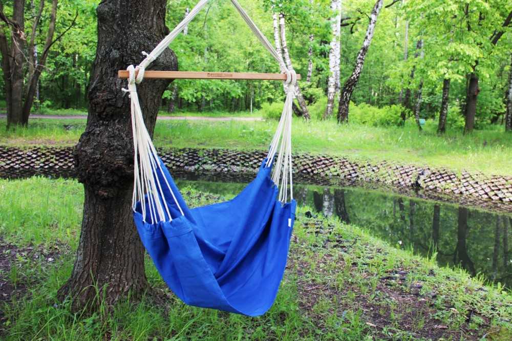 Самый быстрый и легкий вариант — это изготовить своими руками подвесное кресло-гамак