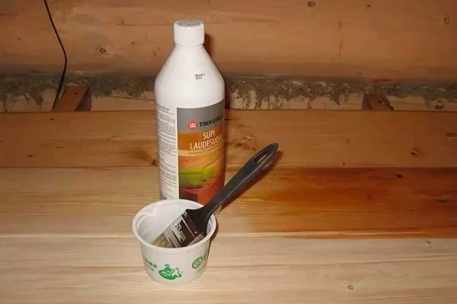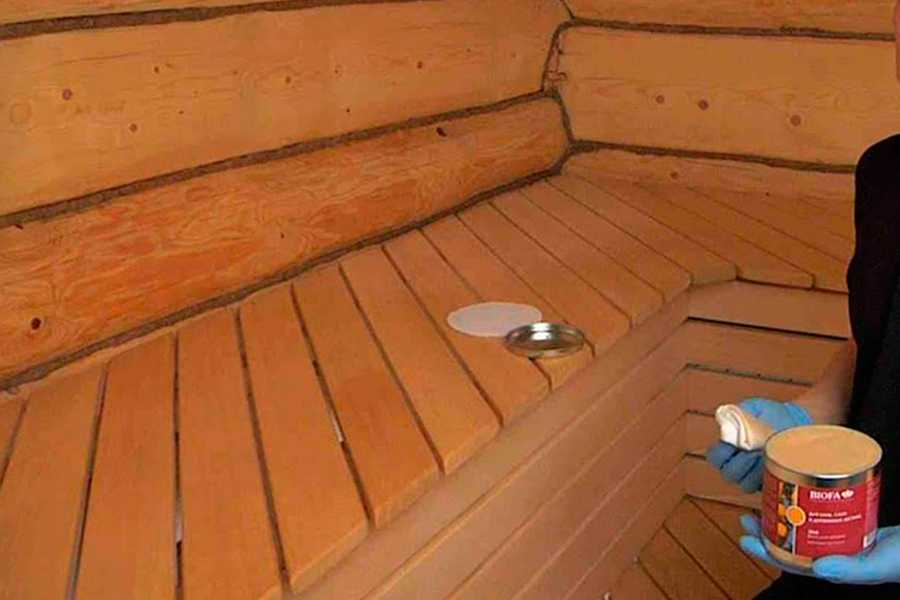 Если материал пропитан защитным составом, можно избежать опасности возникновения проблем с грибковыми или бактериальными поражениями. Однако, использовать обычные средства — лаки или олифу — в данном случае невозможно. Эти покрытия при нагревании начинают выделять сильный запах, что делает пребывание в парилке невозможным.