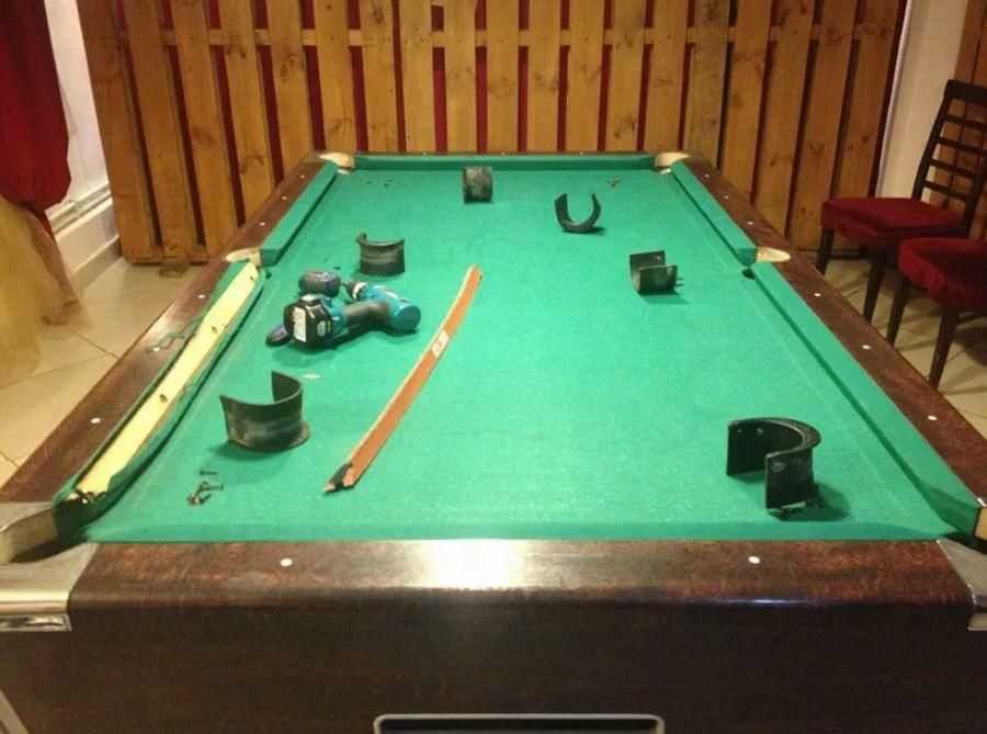 Естественно, прежде, чем приступить к реставрации бильярдного стола, Вам необходимо его разобрать, делать это стоит очень аккуратно, так как Вам потом его собирать обратно, но уже обновленным.