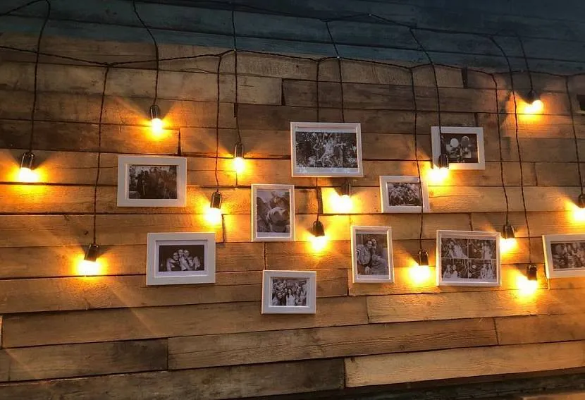 В зависимости от предпочтений и общего цветового фона можно выбрать различные варианты проводов. Это могут быть свободно висящие декоративные шнуры, затянутые в большой декоративный узел или собранные в пучок. Выбор тех или иных ламп также зависит от типа освещения. Для настенных бра можно выбрать лампы, имитирующие огонь свечи. Для размещения над кроватью или креслом подойдут большие лампочки с круглой колбой. С помощью них также можно организовать и центральное освещение комнаты. Для этого вместо люстры подвешиваются сразу несколько ламп на длинном шнуре, собранном в пучок. Оригинально разнообразить интерьер поможет ретро гирлянда с лампами накаливания. Также она подойдет для украшения торжественного мероприятия, например, свадьбы. Уместна она будет и на праздновании Нового года. Ее теплый янтарный цвет создаст атмосферу волшебства и праздника. Гирлянда из ретро ламп – это эффектный вариант декоративного оформления, который идеально подойдет для декорирования зала, фасада здания или сада. Беседка, украшенная такой гирляндой, выглядит шикарно и романтично одновременно.