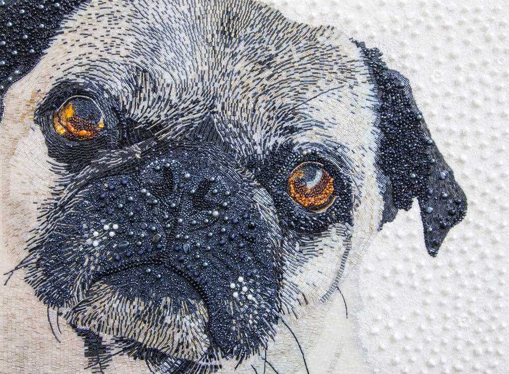 На производство одной картины у художницы уходит 1-2 месяца. Каждая бусинка и пуговичка крепится к полотну при помощи клея.